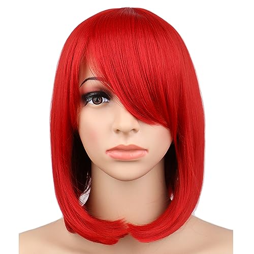 ウィッグ ショートヘア ボブ コスプレ アニメ イメチェン 変装 仮装 ハロウィン イベント パーティー 祭 余興 (レッド)
