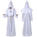 コスプレ コスチューム ロング ローブ 魔導士 僧侶 修道士 神父 牧師 ハロウィン 仮装 衣装 パーティー 余興 4点セット (XL, ホワイト)