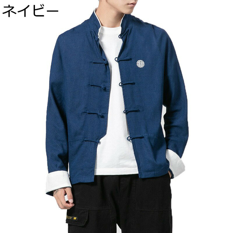 トップス コーデュロイシャツ メンズ 長袖 春秋 チャイナ風 紳士服 レトロ ユニセックス ワンポイント刺繍 中国 唐装 ジャケット 伝統的 選べるカラー カラバリ豊富 ポロ襟