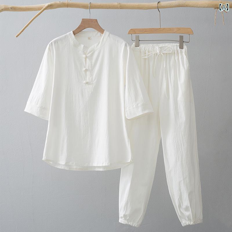 瞑想服 ユニセックス メンズ レディース兼 トップス シャツ パンツ ボトムス チャイナ風 レトロ 唐装 仏教 瞑想 セットアップ セットアップ 夏
