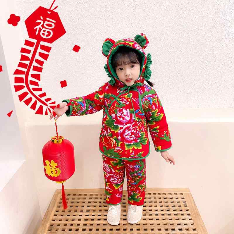 女の子 綿入り ジャケット ボトムス 子供服 花柄 赤ちゃん ベビー 幼児 冬服 セット 男の子 唐装 厚手 暖かい ユニセックス チャイナ風 かわいい