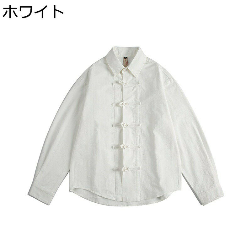 メンズ チャイナ風 ユニセックス 折り襟 ボタンダウンシャツ 結び釦シャツ 中華風 盤扣 ルース カジュアルシャツ 着心地いい 通気性 普段 通勤 漢服 白シャツ 茶師服 トップス 唐衣 スタイリッシュ