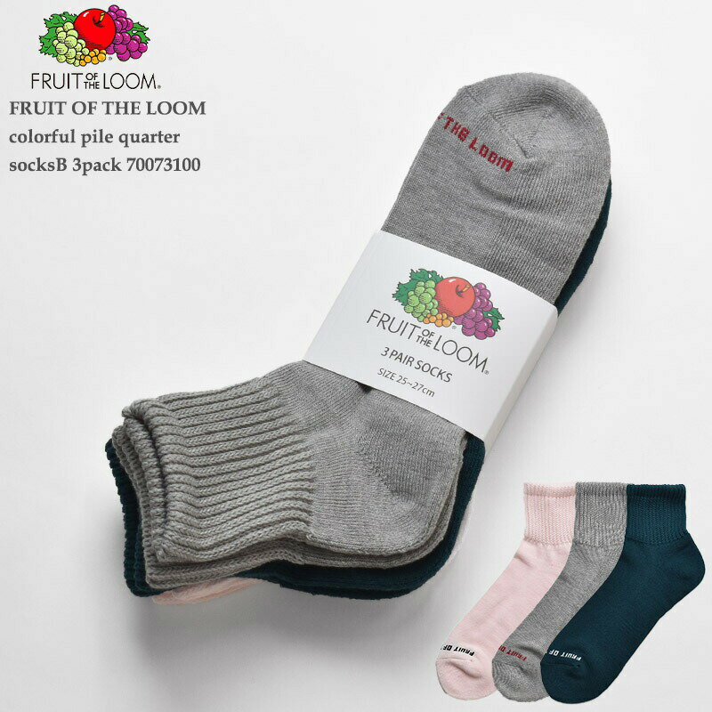 FRUIT OF THE LOOM フルーツ オブ ザ ルーム FTL colorful pile quarter socksB 3pack 70073100 カラフル 底パイル ソックス 3足組 メンズ レディース ユニセックス