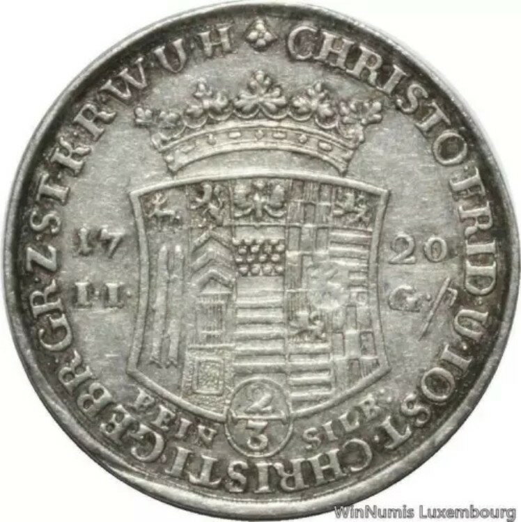 H1937 レア シュトルベルグ 2/3 ターラー クリストフ フレデリック ヨスト クリスチャン 1720 IIG シルバー-
