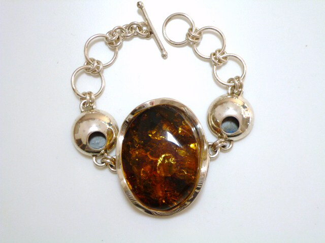 《ヨーロッパセレブ・テイスト》【レターパックプラス送料無料】貴重な濃密アンバー色“琥珀”のシルバーブレスレット【人気のトルコ雑貨】【RCP】
