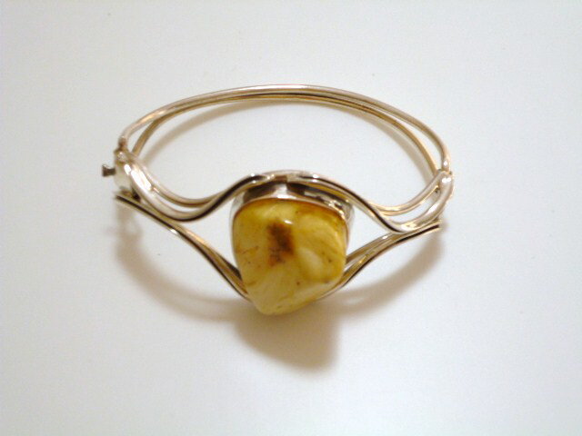 《在庫整理の為の特別価格》【レターパックプラス送料無料】《ヨーロッパセレブに人気》貴重な“白い琥珀”のシルバーバングル【RCP】