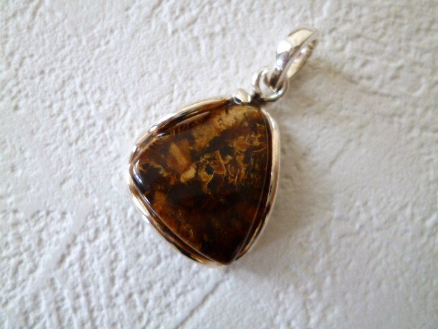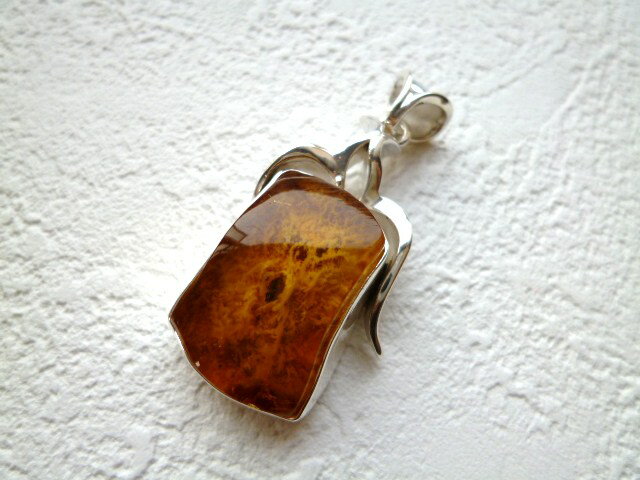 《ヨーロッパセレブ・テイスト》原石の独特な模様が他に無い上質《琥珀》のシルバーペンダントTOP【トルコ雑貨】【RCP】
