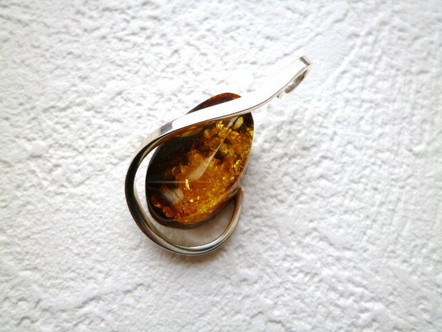 《ヨーロッパセレブ・テイスト》貴重な石目が綺麗な《琥珀》のシルバーペンダントTOP【トルコ雑貨】【RCP】