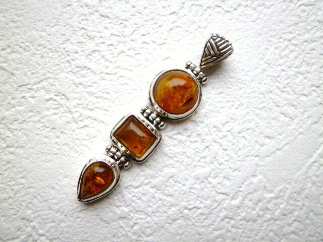 《ヨーロッパセレブ・テイスト》トルコエスニックな銀細工の3連《琥珀》のシルバーペンダントTOP【トルコ雑貨】【RCP】
