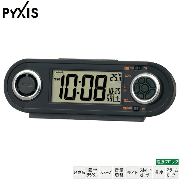 【2/15は期間限定クーポン発行】目覚まし時計 置時計 セイコー 電波 デジタル 大音量 PYXIS ピクシス RAIDEN ライデン 黒 メタリック カレンダー SEIKO【KK9N0D18P】
