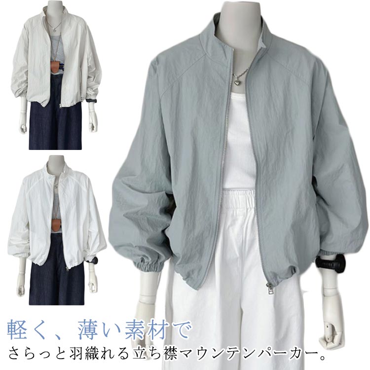 レディース ジャケット 薄手 防風 夏 ブルゾン 長袖 カジュアル 春 ライトアウター ショート丈 UVカット マウンテンパーカー パーカー 立ち襟 ウィンドブレーカー マウンテンパーカー ジャンバー ジャンパー 軽量 紫外線対策 冷房対策 カジュアル スポーツ アウター