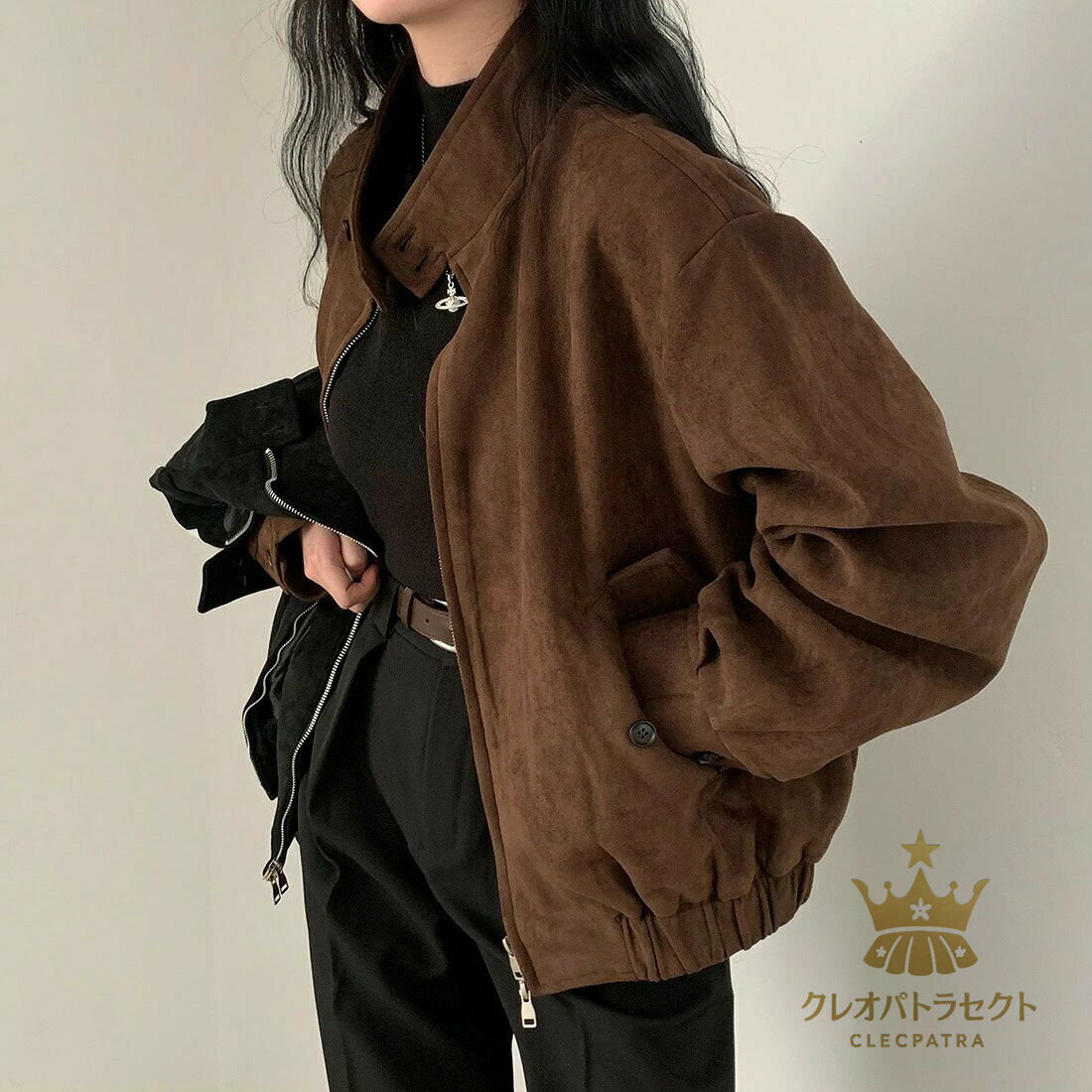 ジャケット レディース アウター ライトジャケット 秋 ブルゾン 羽織 羽織り 上着 ライトアウター スタンドカラージャケット 長袖 立ち襟 スエード ダブルジップ 大きいサイズ 着回し 秋 冬 スエードジャケット