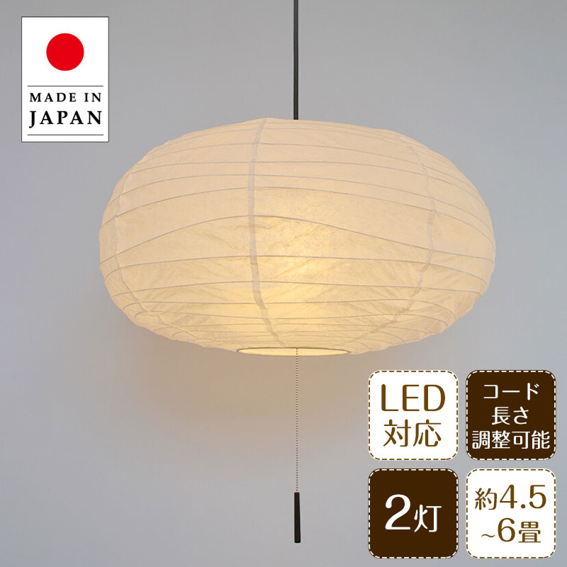 ペンダントライト cotton コットン SPN2-1115 彩光デザイン | 照明器具 照明 天井照明 ペンダント ライト ランプ 吊り下げ 2灯 大型 プルスイッチ 日本製 和紙 ランプシェード 120W E26 和室 寝室 リビング レトロ モダン 和モダン 和風 民泊