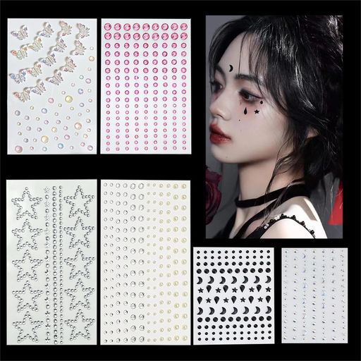 YBGGJOフェイスステッカーキラキラ3D光るラインストーンメイク顔面デコフェイスシールDIY自己接着接着剤不要ラインストーンシールセット