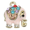 MIXラインストーンチャーム1個 ピンクぞう型 メタルチャームアクセサリーパーツ