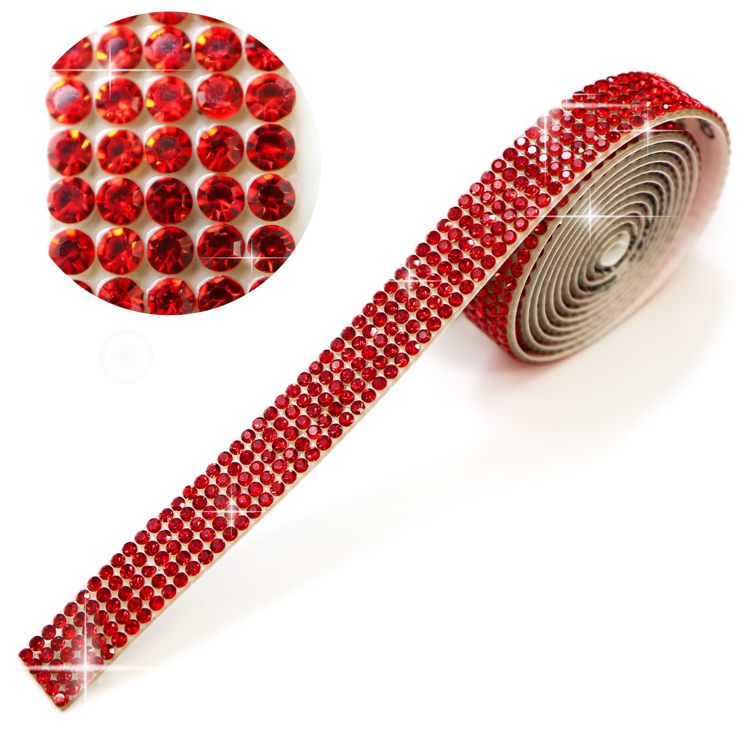 ラインストーン テープ キラキラ デコレーションシール 細幅【レッド】1巻 幅10mm×長さ915mm きらきらぷんぷん丸 R038