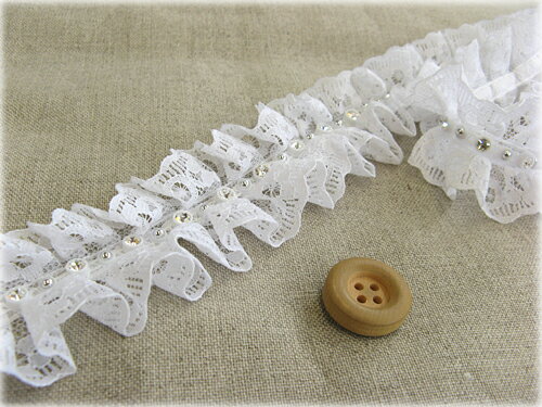 両端スカラップタイプのフリルラッセルレース真ん中にキラキララインストーンテープ入り