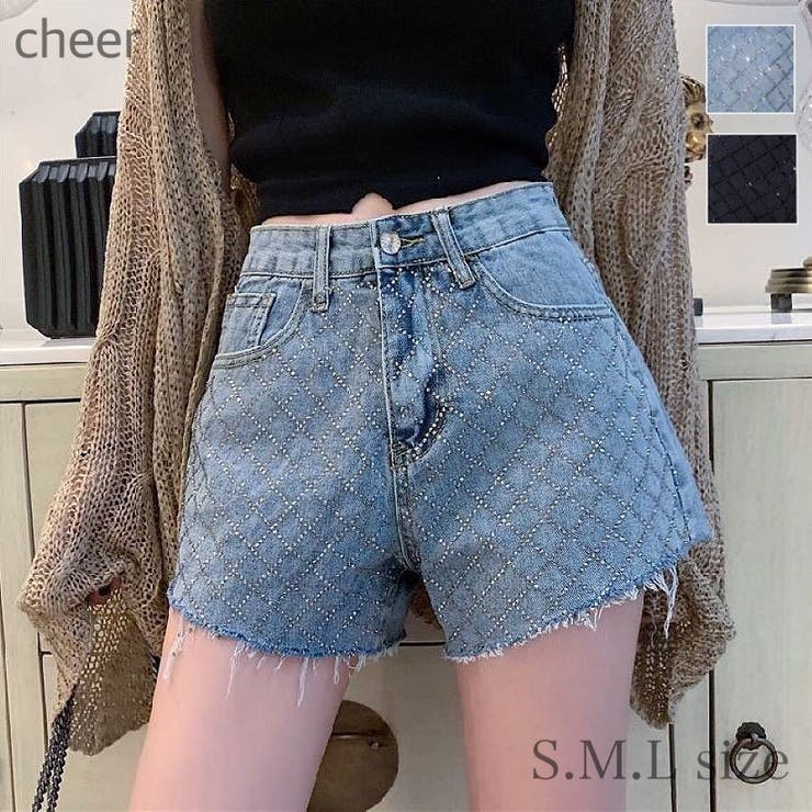 ラインストーンデニムショートパンツ