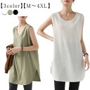 カットソー レディース トップス タンクトップ ロング チュニック ノースリーブ スリット タンク ロングタンクトップ インナー ラウンド裾 Uネック 重ね着 ロング丈 シンプル 無地 春 夏 お尻が隠れる 肌に優しい
