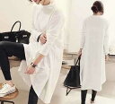 Tシャツ ロング ラウンドネック アシンメトリー スリット レディース 長袖 トップス カットソー チュニック プルオーバー ゆったり 重ね着 レイヤード 白T 非対称 無地 春 秋 白 ホワイト シンプル トレンド 個性 大きいサイズ オーバーサイズ モード ファッション