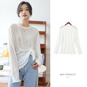 ひんやり 長袖Tシャツ 送料無料 ロンティー シアーニット tシャツトップス レディース ロンT カジュアル ロンt カットソー プルオーバー 長袖 ラウンドネック サマー 大人 シンプル レイヤード サイド 裾 スリット 長袖 ロング丈 チュニック 冷感