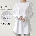Tシャツ ロング 綿100% レディース 長袖 お手入れ簡単 トップス カットソー チュニック プルオーバー ゆったり 重ね着 レイヤード 定番 白T ラウンドネック ラウンドヘム お尻が隠れる 綿 コットン 無地 春 秋 冬 白 ホワイト シンプル ベーシック 大きいサイズ