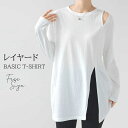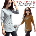 レディース ラウンドネック フィット シンプル 無地 トップス 斜めカット ロングシャツ【大きいサイズ レディース 無地 シャツ チュニック 秋冬 tシャツ ゆったり uv shirt】