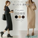 ニットワンピース ワンピース ロング 秋冬 レディース チュニック マキシ丈 長袖 ラウンドネック ニット 無地 スリット シンプル 30代 40代