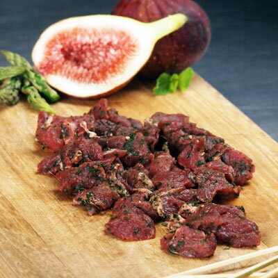 ラクダ肉 竹串付き味付けラクダ肉キューブ 150g (肉串、ケバブ)-D043