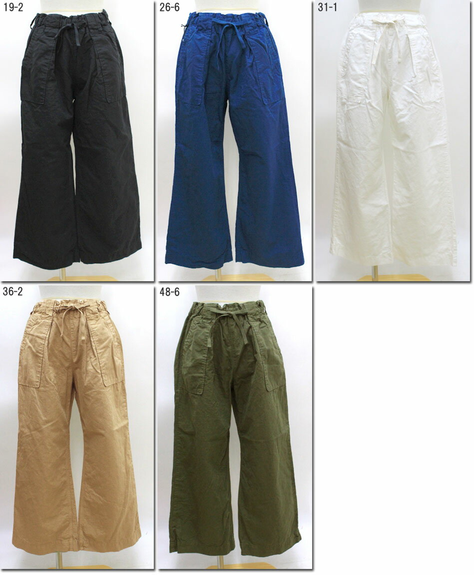---------------------------------------------------- +素材+ コットン 100% ---------------------------------------------------- サイズ ウエスト 股上 股下 ヒップ わたり幅 裾幅 1 77 34 48 104 33 19 2 79 35 49 108 34 20 3 82 35.5 49 110 34.5 20.5 単位(cm) ※上記の採寸は実寸で計測しております。 ただし、同じサイズでも1点1点多少の誤差はございます。 ※シワや素材により若干のサイズ違いはご了承くださいませ。