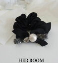【ポイント5倍★11/27 1:59まで】ブラックサテンリボン ラグジュアリーパール クリスタルチップヘアゴム レトロエレガント 30 - 40 代レディース ディナーコーデ ウェディングゲスト 自己へのご褒美 母の日ギフト サテン光沢 パール輝き クリスタル煌き 季節感(秋冬)