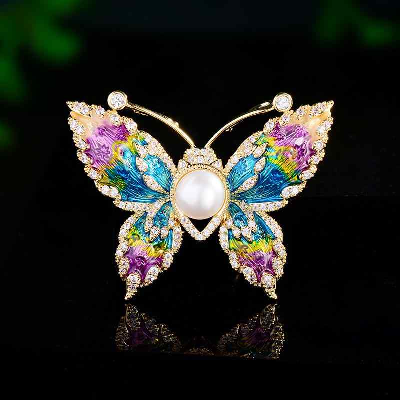 ブローチ レディース 上品 エレガント 高級感 豪華 ラグジュアリー パール 蝶々 昆虫モチーフ エナメル加工 個性的 デザイン性 欧米風 通勤 オフィス カジュアル アクセサリー