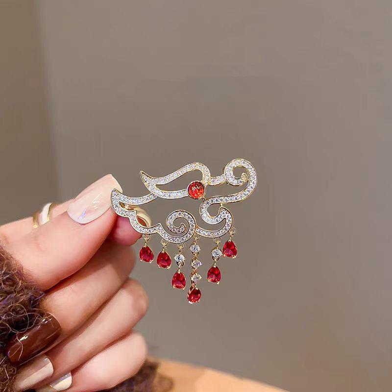 ブローチ レディース 谷間隠し 多機能 軽やか ラグジュアリー パール タッセル 高級感 上品 繊細 雲モチーフ スーツ フォーマル 亜鉛合金製 電気メッキ加工 クラウン リボン ハート グリーン ローズレッド