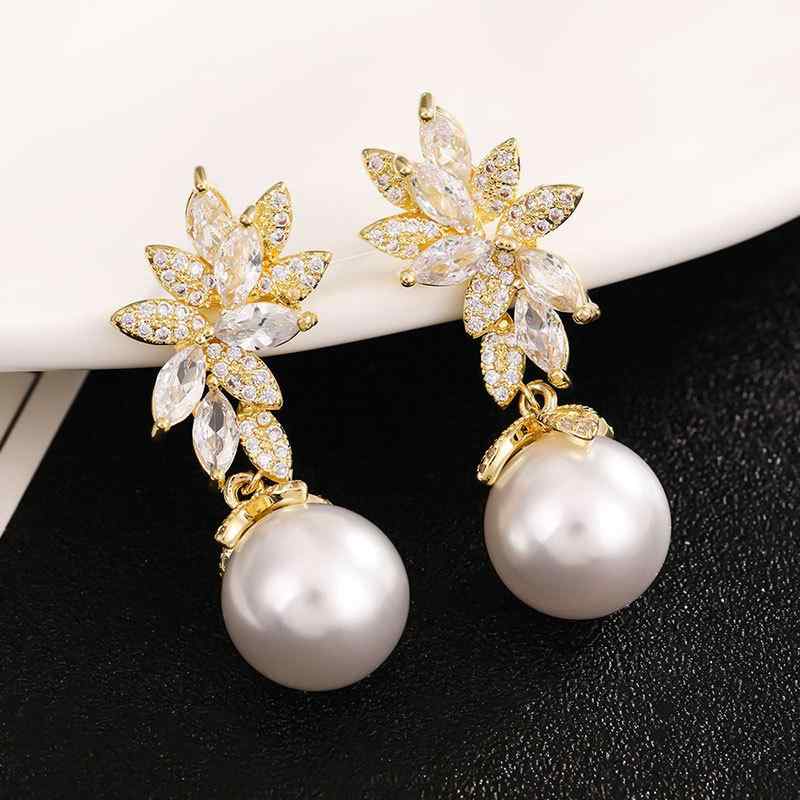 ・素材: 銅・加工技術: 象嵌・形状: 花・象嵌素材: ジルコン・流行要素: 花・スタイル: 日韓風・スタイル分類: 清新で甘め・カテゴリ: 耳飾り・対象: 女性・流行要素分類: 植物、花