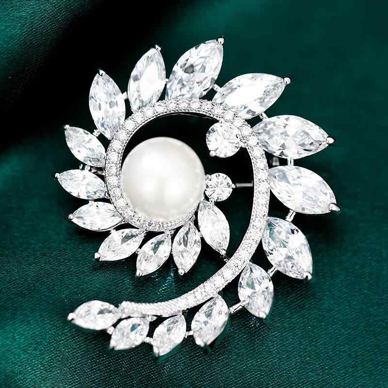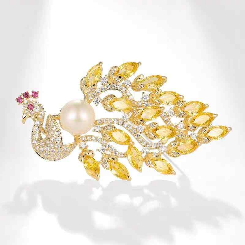ブローチ レディース 精密マイクロパヴェ ジルコニア クジャク ゴールド 銅製 高級感 おしゃれ ライトラグジュアリー パール 秋冬 コート スーツ ファッション 通勤用