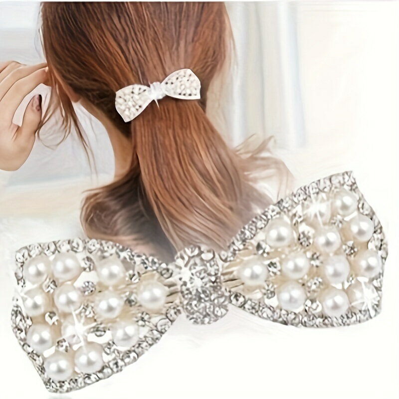 ラグジュアリーパール&ラインストーンヘアクリップ - 女性用エレガント合金バレッタ、理想的なギフト