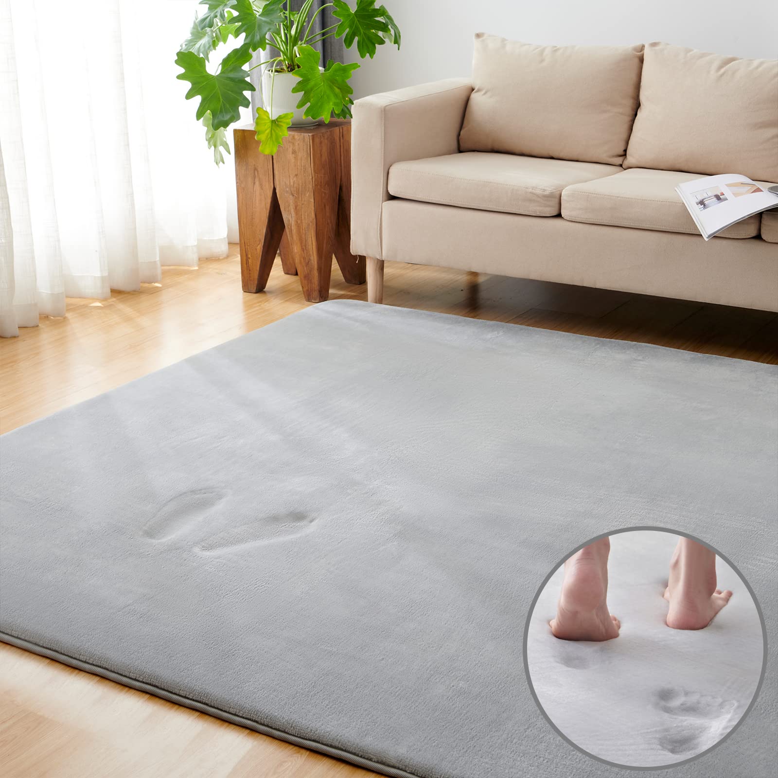KEUSNIX カーペット ラグ 低反発 極厚25MM 滑り止め付 厚手 ラグマット 防音 じゅうたん フランネル 抗菌・防ダニ加工 オールシーズン 絨毯 ふわっと手触り こたつマット 床暖房・ホットカーペット対応 135X185CM(約1.5畳) グレー