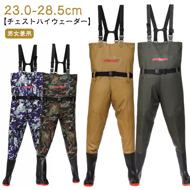【男女兼用】【23.0-28.5cm】【チェストハイウェーダー】足から胸までを覆う部分に防水性・撥水性の高い生地が使われており、履くだけで体が濡れるのをしっかり防ぐことができます。チェストハイ型の完全防水ウェーダー、サーフや河川の渓流、本流域の釣りで大活躍です。PVC加工で防水性・撥水性の高い生地が使われており、水に濡れないのはもちろんですが、水温で奪われる体温の低下スピードを遅くします。ブーツとズボンは縫い合わせるのではなく、一体化でつくられており、水漏れはしません。通気性もよいこの胴長ウェーダーをはき、渓流に入っても体を乾燥的に保ちます。ソールはグリップのいい深溝のラジアル底で、靴裏は厚底になっており踏みつけ怪我の防止になります。女性も男性も着れる小さいサイズから大きいサイズまで揃った12サイズ。様々な場所で活躍:川釣り、潮干狩り、水産加工場、魚市場での現場作業着に、また、田植えや草刈りなど農作業や雪掻き、防災の備えとして。 サイズ 36(23.0cm) 37(23.5cm) 38(24.0cm) 39(24.5cm) 40(25.0cm) 41(25.5cm) 42(26.0cm) 43(26.5cm) 44(27.0cm) 45(27.5cm) 46(28.0cm) 47(28.5cm) サイズについての説明 サイズ図を参考してください。 ※商品によって1-3cm程度の誤差がある場合がございます。 素材 PVC 色 01 02 03 04 05 06 07 08 09 10 11 12 備考 ●サイズ詳細等の測り方はスタッフ間で統一、徹底はしておりますが、実寸は商品によって若干の誤差(1cm~3cm )がある場合がございますので、予めご了承ください。 ●製造ロットにより、細部形状の違いや、同色でも色味に多少の誤差が生じます。 ●パッケージは改良のため予告なく仕様を変更する場合があります。 ▼商品の色は、撮影時の光や、お客様のモニターの色具合などにより、実際の商品と異なる場合がございます。あらかじめ、ご了承ください。 ▼生地の特性上、やや匂いが強く感じられるものもございます。数日のご使用や陰干しなどで気になる匂いはほとんど感じられなくなります。 ▼同じ商品でも生産時期により形やサイズ、カラーに多少の誤差が生じる場合もございます。 ▼他店舗でも在庫を共有して販売をしている為、受注後欠品となる場合もございます。予め、ご了承お願い申し上げます。 ▼出荷前に全て検品を行っておりますが、万が一商品に不具合があった場合は、お問い合わせフォームまたはメールよりご連絡頂けます様お願い申し上げます。速やかに対応致しますのでご安心ください。