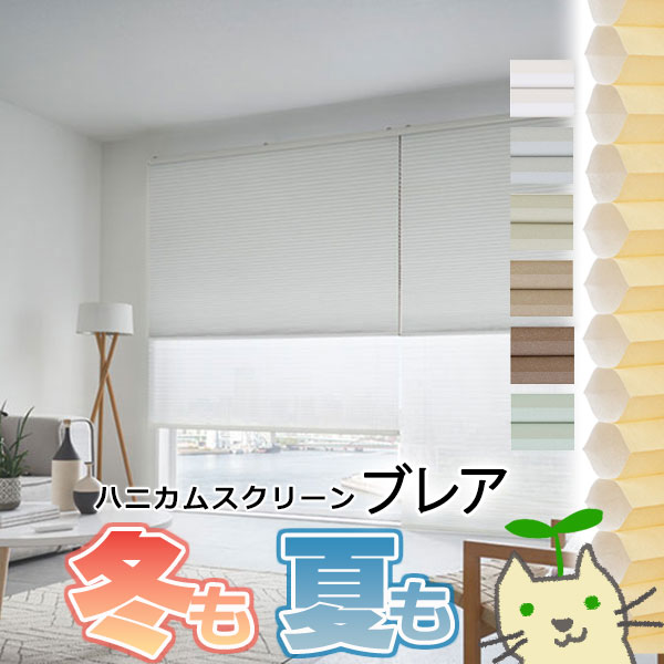 商品名ハニカムスクリーン タチカワブラインド ブレア HS1001〜1008 メライトサイズ幅は5mm単位・高さは10mm単位でオーダーサイズ製作可能です。(ガイドレールの高さは1mm単位)ハニカムスクリーン 断熱性が高く、意匠性に優れています。無地生地「メライト」全6色をご用意。お部屋のシーンや用途に合わせてお選びいただけます。備考※メーカー希望小売価格はメーカーカタログに基づいて掲載しています返品原則としてお受けできません。ページ内検索生地品番一覧:HS-1001 HS-1002 HS-1003 HS-1004 HS-1005 HS-1006 HS-1007 HS-1008 hs-1001 hs-1002 hs-1003 hs-1004 hs-1005 hs-1006 hs-1007 hs-1008窓周り関連キワード:ハニカムスクリーン プリーツスクリーン ペルレ ブレア もなみ ニチベイ 和室 遮光 ツイン タチカワ おすすめ 値段 トーソー 幅は5mm単位・高さは1cm単位 オーダーハニカムスクリーン タチカワ ブレア brairハニカムスクリーン 窓から暮らしをかなえるハニカムスクリーンは生地が作る空気層により、窓辺の断熱性が高まり、冷暖房効率を向上してくれます。和室 洋室 寝室 などシーンに合わせて幅広く選べる生地をラインナップ。遮光生地にすると、寝室にもぐっすり眠れます。空間をより快適にしてくれます。ブレア HS-1006 メライト(グリーン) 部品色:オフホワイトブレア HS-1007 メライト(イエロー)部品色:オフホワイトハニカムスクリーンをピッタリサイズでオーダーご自宅の窓に合わせてハニカムスクリーンを幅5mm、高さは1cm単位でオーダーできます。取付けは、ドライバー1本あれば簡単取付出来ます。実物の生地サンプルも無料でお送りしますので、色合いなど不安な方はサンプル請求をお申しください。ハニカムスクリーン「無地」シリーズは、柔らかな光を採り込み、きちんと目隠ししてくれるのでさまざまなシーンに幅広くご使用いただけます。長く過ごすリビングやお子様のいる空間にもおすすめです。メライト HS-1001〜1008ハニカムスクリーン ブレアの特長ハニカム(蜂の巣)構造の生地が作る空気層により、窓辺の断熱性が高まり、冷暖房効率を向上します。また、生地内部をコードが通るため、穴からの光漏れがないうえ、意匠性ににも優れています。心地よい空間をつくる、ハニカムスクリーンハニカムスクリーンのサイズや仕様は、用途や空間の条件によって様々に異なります。使う場所によって選べる、ハニカムスクリーンは、リーズナブルで、豊富な製品バリエーションで、あらゆるシーンでぴったりのハニカムスクリーンがきっと見つかります。ハニカムスクリーンの取付け※必ず、ネジ止めできる場所かを確認してください。(1)製品本体のヘッドボックスの端から50〜100mm内側に、取付けブラケットをビスで固定してください。(2)ブラケット間隔が均等になるようにけブラケット位置を決めてドライバーでネジを固定してください。(3)手前のツメにヘッドボックスを引っ掛けて「カチッ」と音がするまで押し上げてください。ハニカムスクリーンのタイプ画像をクリックしてください。