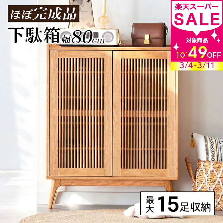 割引品 シューズラック ルーバー扉 幅80cm 5段 玄関収納 シューズボックス 下駄箱 靴収納 天然木 ナチュラル オーク 可動棚 靴入れ 下足箱 和風 収納 玄関 新生活 MUTUKI