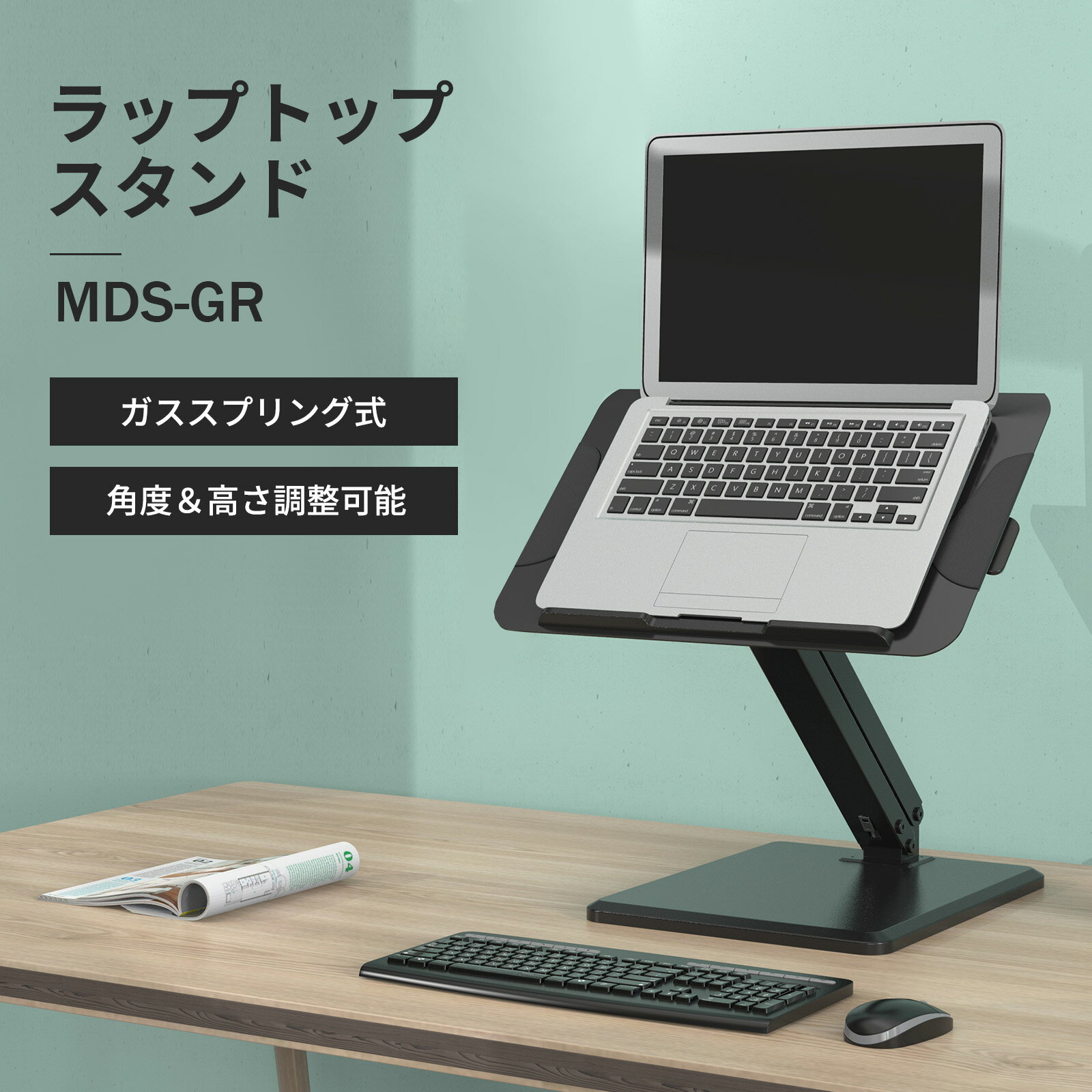 E-WIN ラップトップスタンド ガススプリング式 ノートパソコンスタンド 高さ 角度調整可能 コンパクト 折り畳み 持ち運び コンパクト ノートパソコン台 スタンド 黒 ブラック MDS-GR