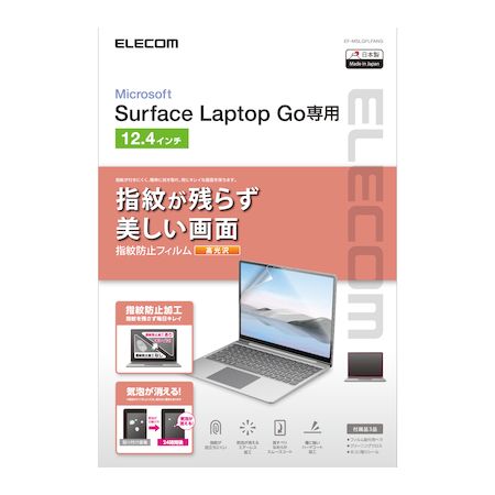 【商品解説】気泡がキレイに抜けるエアレス加工。液晶画面を傷や汚れから守る、防指紋・高光沢タイプのSurface Laptop Go用液晶保護フィルムです。●液晶画面を傷や汚れから守る、指紋防止・高光沢タイプの液晶保護フィルムです。●つやのある高光沢加工により、画像の輪郭がくっきり見えます。●光線透過率約92.5%を実現した高光沢フィルムにより、画質を損なわない透明感を実現しています。※光線透過率は実力値です。●指紋汚れを付きにくくする指紋防止コーティングを施しています。●鉛筆硬度3Hのハードコート加工により、フィルム表面の傷を防止します。※硬度は実力値です。●時間の経過とともに気泡が目立たなくなる特殊吸着層を採用したエアーレスタイプです。●小さな気泡ができたときには、指などで押し出すことで気泡を抜くことができます。●貼り付け面にシリコン皮膜をコーティングし、接着剤や両面テープを使わずに貼り付け可能な自己吸着タイプです。貼りやすく、貼り直しも可能です。●フィルムがキレイに貼れる、専用ヘラと、クリーニングクロス、ホコリ取りシールが付属しています。【スペック】●型式:EF-MSLGFLFANG(EFMSLGFLFANG)●JANコード:4549550201766適応サイズ:[対応機種]Microsoft Surface Laptop Go (12.4インチ) ※2020年12月時点での情報です。付属品:セット内容:液晶保護フィルム×1、ホコリ取りシール×1、クリーニングクロス×1、ヘラ×1可視光線透過率:91%仕様1:■対応機種:Microsoft Surface Laptop Go2 12.4インチ(2022年) / Microsoft Surface Laptop Go 12.4インチ(2020年) ※2022年6月時点での情報です。 ■セット内容:液晶保護フィルム×1、ホコリ取りシール×1、クリーニングクロス×1、ヘラ×1 ■材質:接合面:シリコン、外側:PET ■フィルター厚み:0.153mm(他保護シート0.075mm) ■可視光線透過率:91% ■表面硬度:3Hこの商品は宅配便でお届けする商品です出荷可能日から最短日時でお届けします。※出荷完了次第メールをお送りします。配送サービス提供エリアを調べることができます「エリア検索」をクリックして、表示された画面にお届け先の郵便番号7桁を入力してください。ご購入可能エリア検索お買い上げ合計3,980円以上で送料無料となります。※3,980円未満の場合は、一律550円(税込)となります。●出荷可能日から最短日時でお届けします。(日時指定は出来ません。) ※お届け時に不在だった場合は、「ご不在連絡票」が投函されます。 「ご不在連絡票」に記載された宅配業者の連絡先へ、再配達のご依頼をお願いいたします。●お届けは玄関先までとなります。●宅配便でお届けする商品をご購入の場合、不用品リサイクル回収はお受けしておりません。●全て揃い次第の出荷となりますので、2種類以上、または2個以上でのご注文の場合、出荷が遅れる場合があります。詳細はこちら■商品のお届けについて商品の到着日については、出荷完了メール内のリンク(宅配業者お荷物お問い合わせサービス)にてご確認ください。詳しいお届け目安を確認する1度の注文で複数の配送先にお届けすることは出来ません。※注文時に「複数の送付先に送る」で2箇所以上への配送先を設定した場合、すべてキャンセルとさせていただきます。