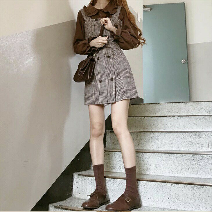 選べる セットアップ 単体 トレンチワンピース ストラップワンピ ミニ丈 タータンチェック チェック 柄 秋 冬 ベルト付き ウエストマーク ハイウエスト オフィス ワンピース シャツ レディース ブラウン カジュアル セットアップ ツーピースにも 単体でも大丈夫