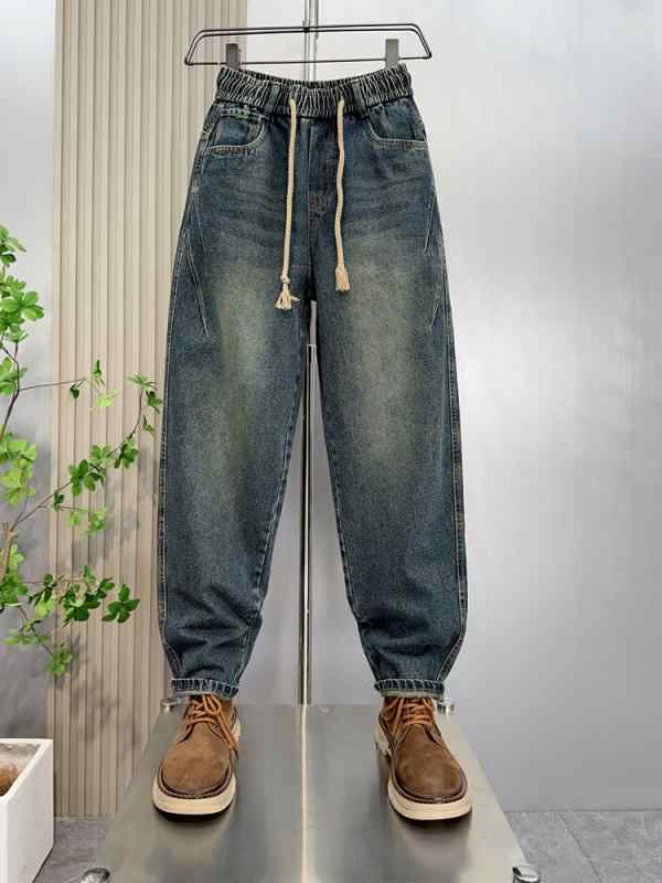 秋冬 コーデ メンズ 服 シンプル ファッション オシャレ 大人 かっこいい 大きいサイズ ストリート 紳士服 アメリカン ストレート ジーンズ 厚手 ベルベット ウォッシュド レトロ パンツ ダディ ラディッシュ