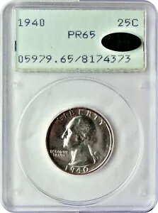 1940 ワシントン シルバー クォーター 25C ジェム プルーフ ラトラー ホルダー PCGS PR65 CAC