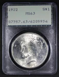 1922 ピース ダラー PCGS による MS63 グレードのオールド グリーン ラトラー ホルダー ヘイジー コイン