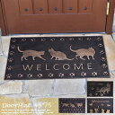 玄関マット ラバーマット 約75cm×45cm 猫 ウェルカムキャット・ウェルカムキティ・レターキャット 屋外 動物 北欧 泥落としマット ドアマット 色 北 ブロンズ 薄型 エントランスマット おしゃれ プレゼント デザイン 人気 カジュアル あす楽