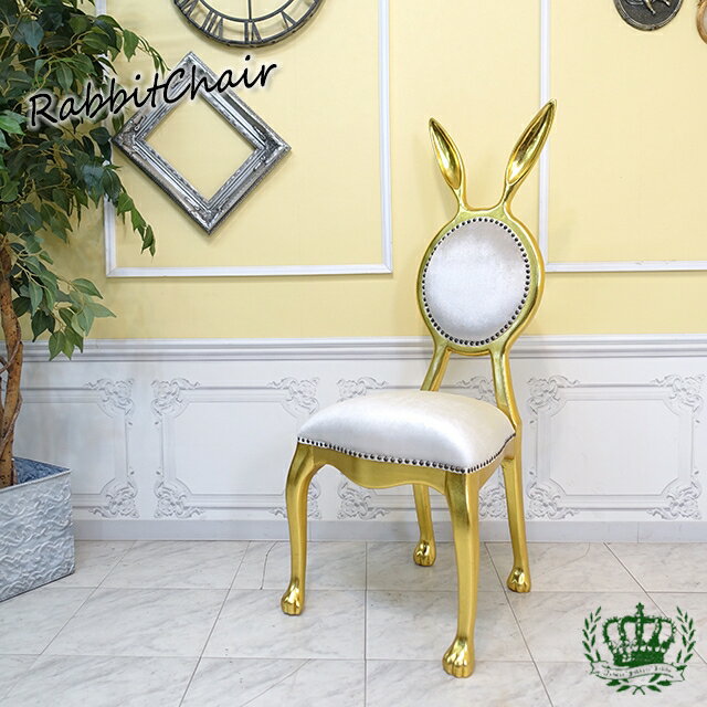 ラビット チェア うさぎ 椅子 ウサギ おしゃれ デザイナーズ アンティーク ヨーロピアン かわいい きれい お店 店舗 什器 ヨーロピアン オリジナル ヨーロッパ アリス 姫系 ドレッサーチェア ダイニング 食卓 カフェ リビング ファブリック パール 6107-10f220