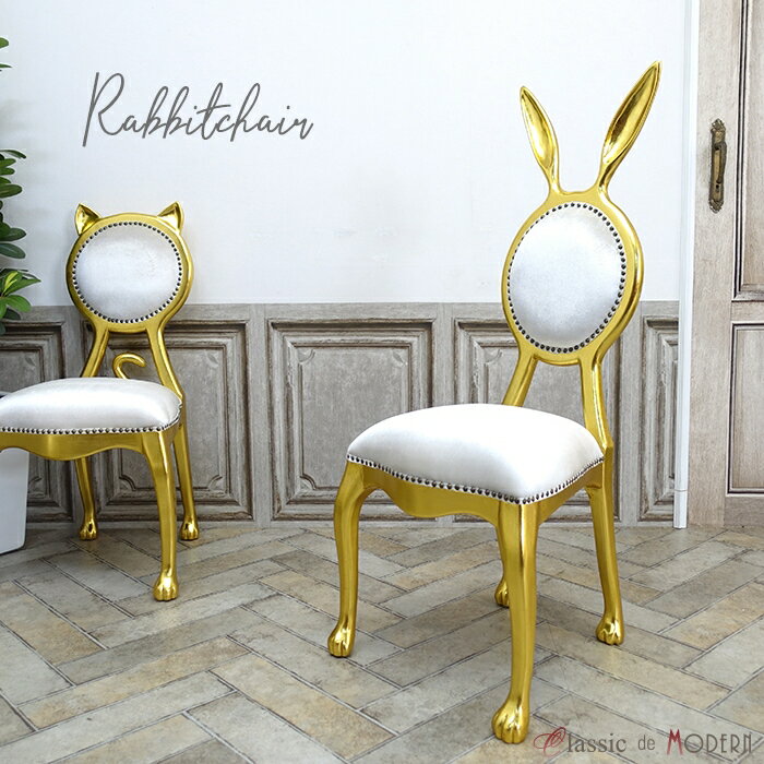 ラビット チェア うさぎ 椅子 ウサギ おしゃれ デザイナーズ アンティーク ヨーロピアン かわいい きれい お店 店舗 什器 ヨーロピアン オリジナル ヨーロッパ アリス 姫系 ドレッサーチェア ダイニング 食卓 カフェ リビング ファブリック パール 6107-51f220