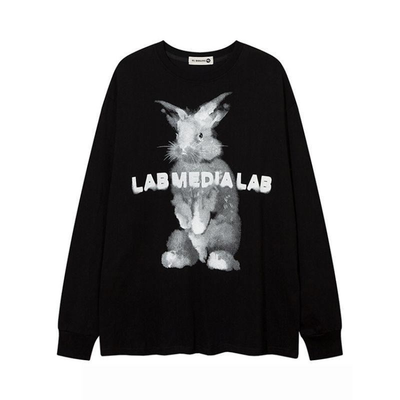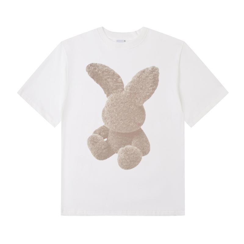 Tシャツ 男女兼用 半袖 コットン ラビットプリント ドロップショルダー 힙합 ストリート カジュアル トップス ブラック ホワイト
